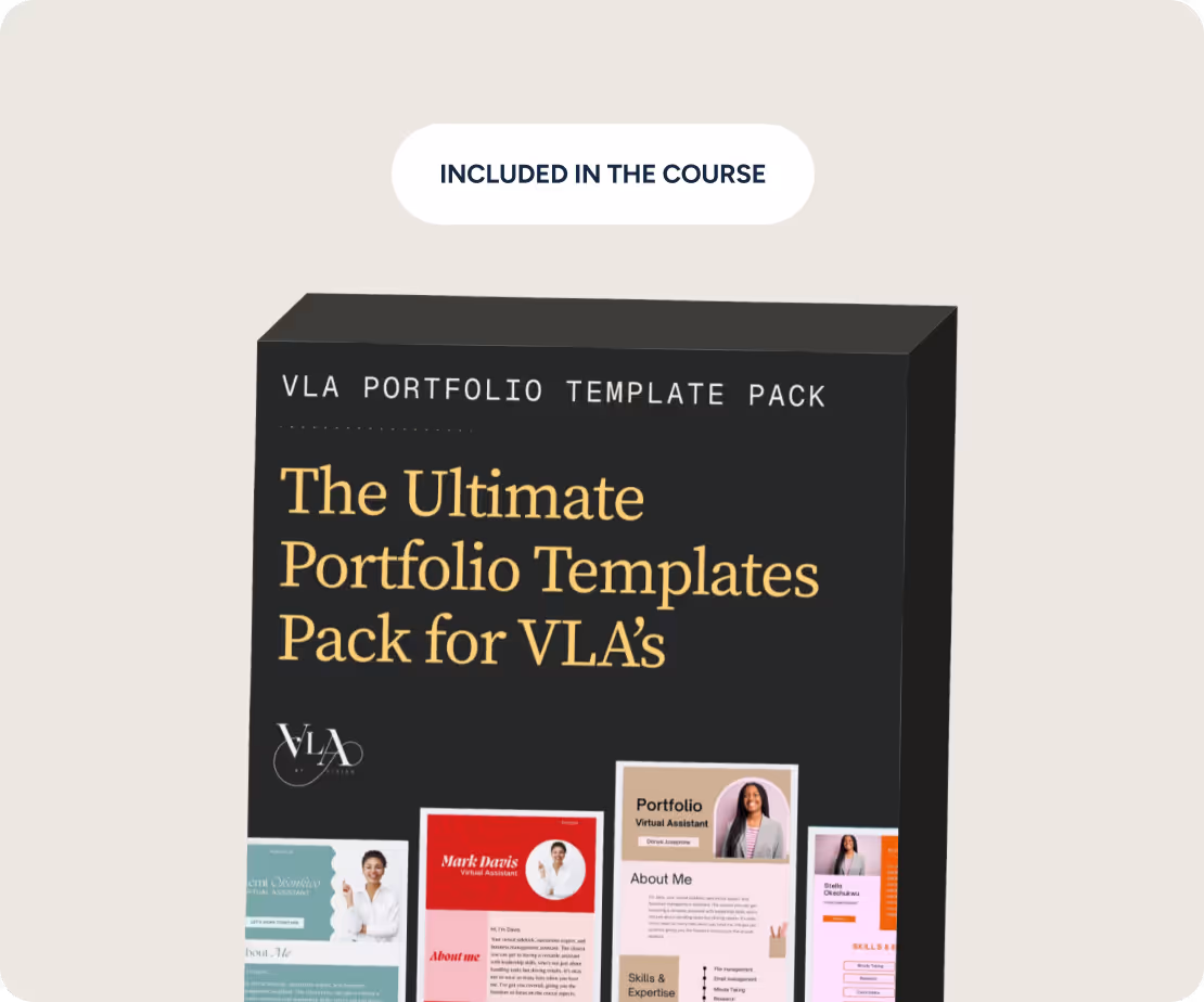 You’ll get the full step-by-step video course, the Job Application Kit, 10+ portfolio templates, a client outreach script library, and bonus lessons on landing your first client and setting up your systems.